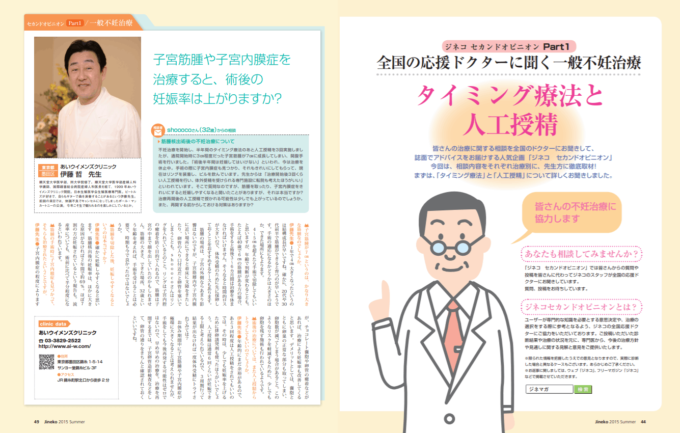伊藤 哲 先生 順天堂大学医学部、同大学院修了。順天堂大学医学部産婦人科 学講師、国際親善総合病院産婦人科医長を経て、1999年あいウ イメンズクリニック開院。日本生殖医学会生殖医療専門医。ビートル ズが好きで、自らもギターで曲を演奏することがあるという伊藤先生。 前回の来日では、体調不良でキャンセルになってしまったポール・マッ カートニーの公演。今年こそ生で観られるのを楽しみにしているとか。